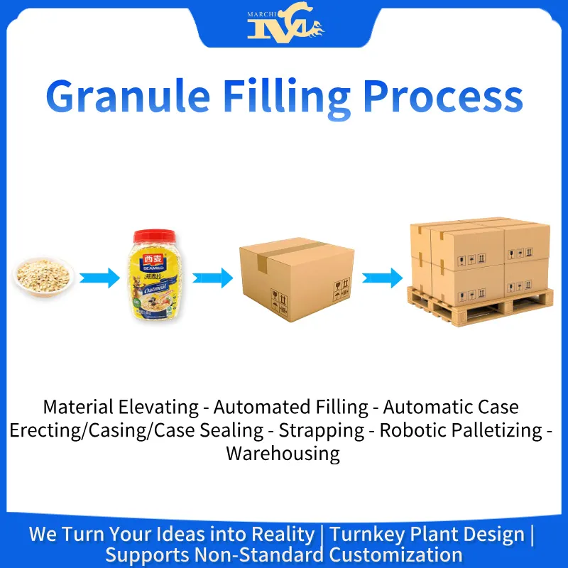 Maichi is a professional manufacturer of Granule Filling Machine Production Lines. Our systems are designed to be dust-free and achieve high-precision packaging. We customize packaging line equipment based on the unique characteristics of each material, offering one-to-one customized services. With 26 years of packaging industry experience, we empower manufacturing enterprises to reduce costs, improve efficiency, and increase production capacity.